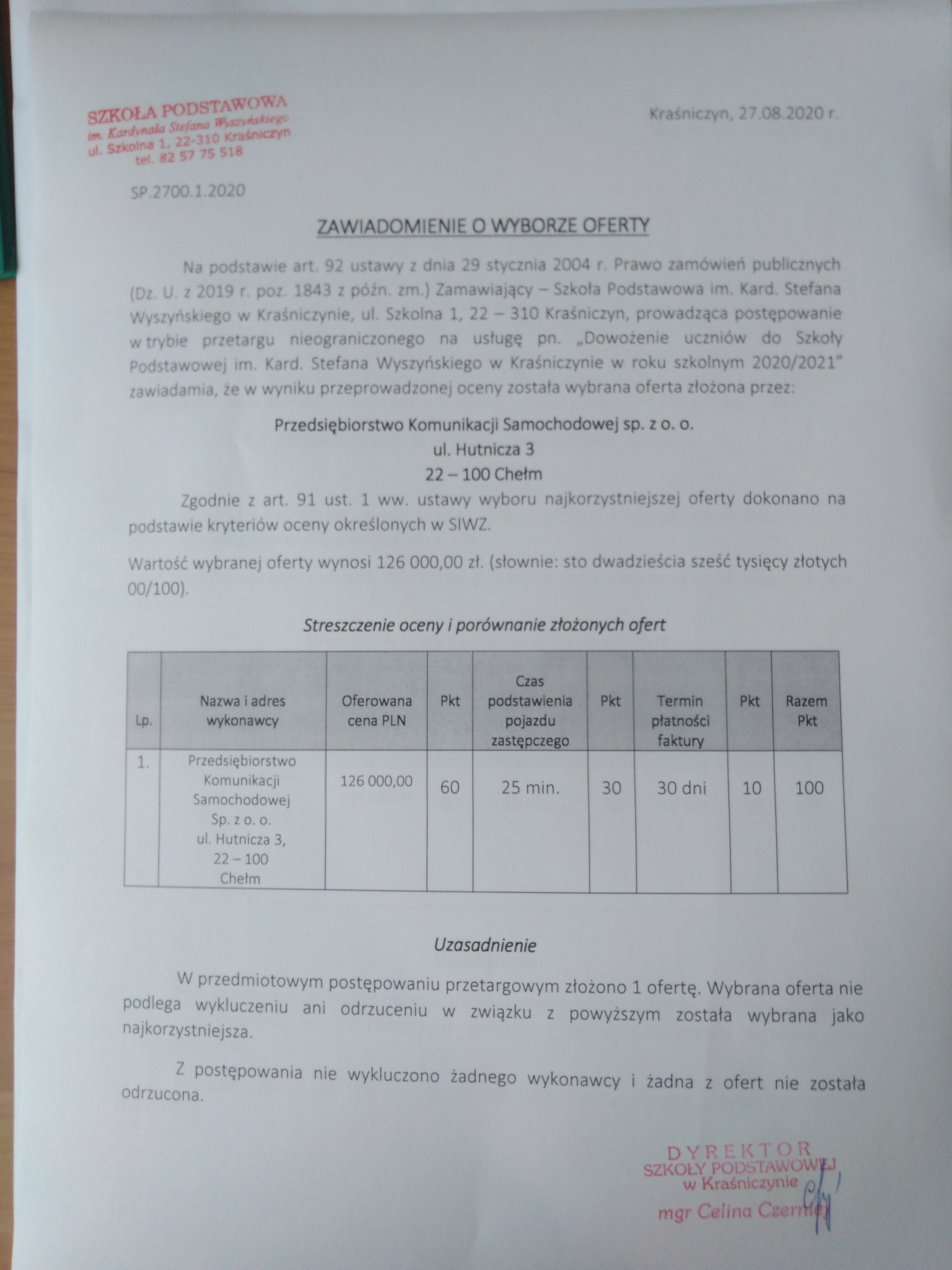 Barbara Litwin) - Dodanie załącznika [zawiadomienie_o_wyborze_oferty_2020.jpg] do dokumentu. (Dokument opublikowany)